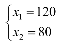 根据实际情况,需要对决策变量进行取整处理,当 x 1 =120、 x 2 =80时,代入式(1-3),得到最大利润为320元。