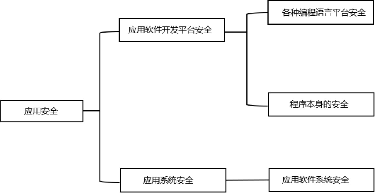 应用安全是指确保应用程序在运行过程中的安全性。因为人们通常将注意力集中在系统和网络的安全防护上,所以与系统安全相比,应用安全往往容易被忽视。然而,应用的安全性对整体安全至关重要,图1-3所示为应用安全的组成。应用安全之所以很难保证,是因为其具备高度的灵活性,且十分个性化。根据不同的需求和场景,每个应用系统可能具有不同的安全需求,因此很难依赖现有的工具或固定的规则对其进行保护。为了实现应用安全,通常需要根据具体应用进行定制化的安全设计和部署,这就会涉及大量的安全技术和经验。
