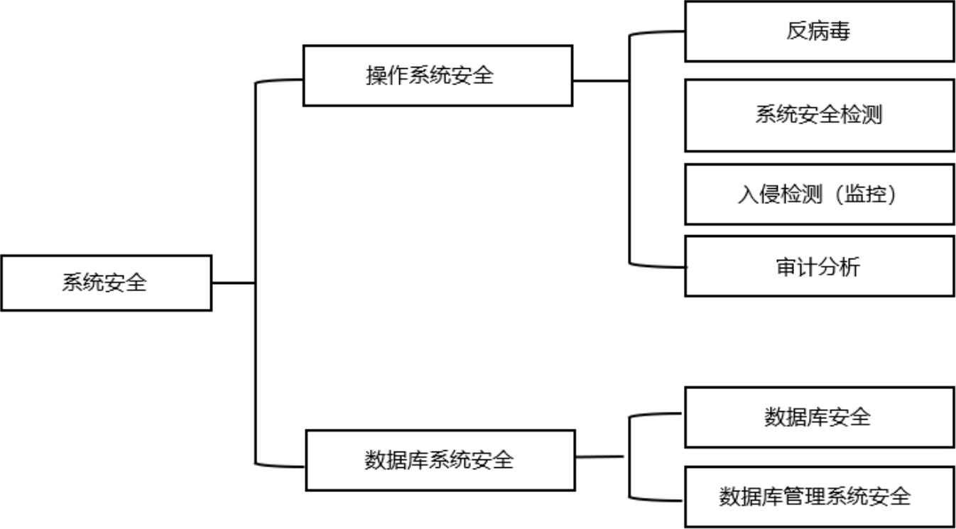 系统安全通常指操作系统、数据库及其他系统软件的安全性。很多人虽然重视网络和操作系统的安全性,但往往忽视数据库及其他系统软件的安全性。作为核心的软件系统,数据库的安全性尤其重要,它承载着大量敏感数据,一旦受到攻击或出现数据泄露,将会造成严重的损失,因此需要被重点保护。图1-2所示为系统安全的组成,它不仅涉及操作系统的防护,还包括数据库及其他系统软件的防护。为了确保系统的安全,需要考虑到系统配置、补丁管理、权限控制等多个方面。