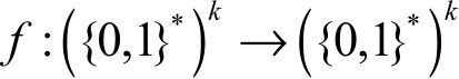 也就是说,对于 k 个互不信任的参与者,计算函数 f 接收 k 个来自不同参与者的比特字符串作为输入,并生成 k 个比特字符串作为输出。
