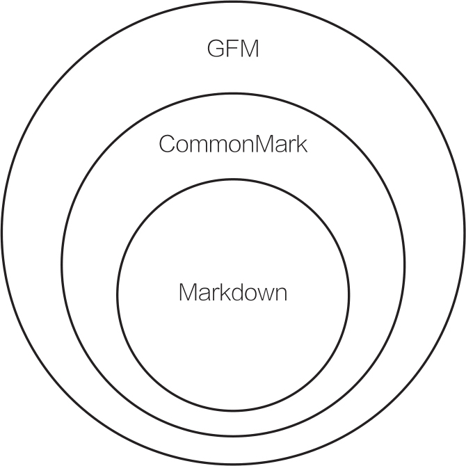 图2-6 GFM、CommonMark和Markdown的关系