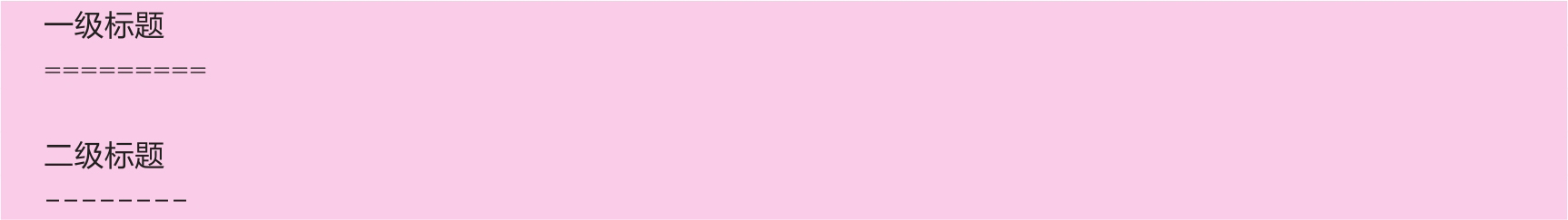 使用底线标记一级标题和二级标题,底线是等号(=)时表示一级标题,底线是短横(-)时表示二级标题,底线符号的数量至少为2个,如图3-1所示。