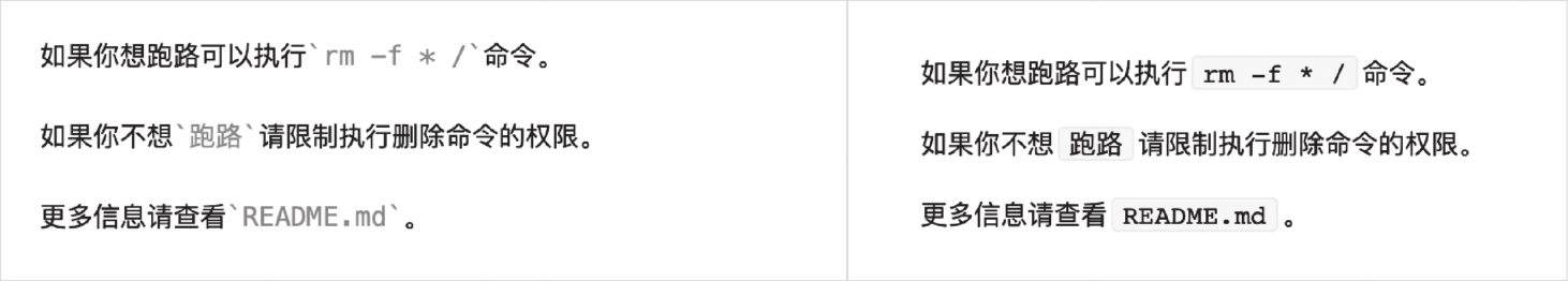 规范1 :除行内代码可以使用`包裹外,如果想转义或强调某些字符,那么也可以使用`包裹。推荐用法如图3-22所示。