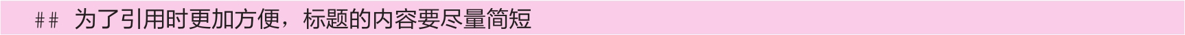 规范5 :标题要尽量简短,便于生成目录时引用。如果标题是一个长句,那么可以从长句中提取标题,将长句作为标题下的内容。