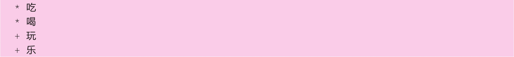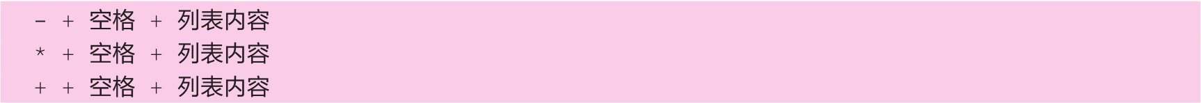 无序列表由“短横(-)、星号(*)、加号(+)+空格+列表内容”标记,语法格式如下。