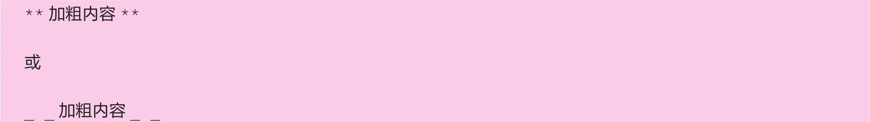 Markdown中用两个星号(**)或两个下画线(__)包裹需要加粗的内容,语法格式如下。