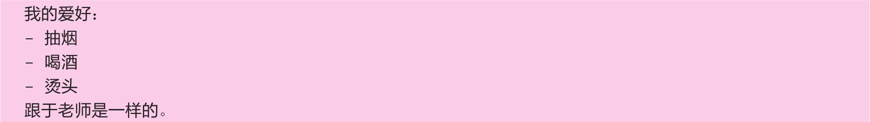 规范2 :如果一个列表中所有的列表项都没有换行,则建议在列表的开头使用-加1个空格。