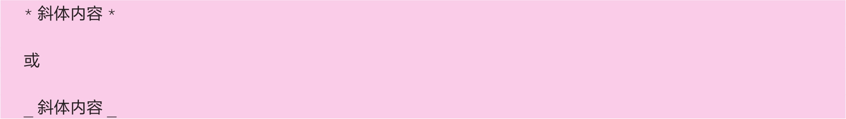 Markdown中用1个星号(*)或1个下画线(_)包裹需要倾斜的内容,语法格式如下。