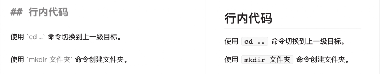 顾名思义,行内代码就是在文字中插入代码,Markdown中使用反引号(')包裹行内代码,可使插入的代码高亮,与其他文字区分开来,如图3-20所示。语法格式如下。
