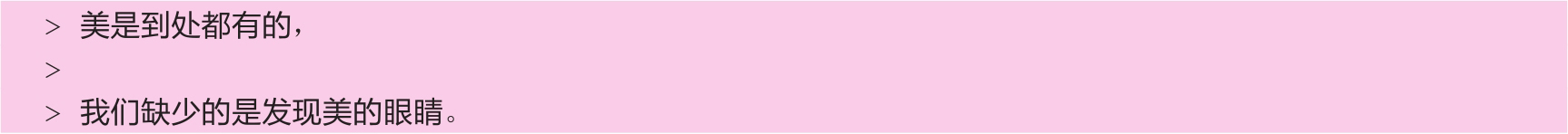 引用是比较常见的排版效果,拥有单独的分段和不同的颜色(一般是灰色)效果。在Markdown中使用大于号(>)标记引用。
