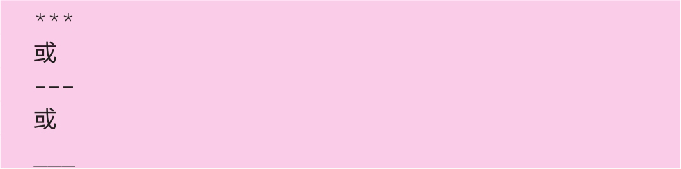 分割线用来分割文章内容。如果文章的前后语义差别比较大,则可以用分割线来区分。在Markdown中,分割线由3个以上的星号(*)、短横(-)、下画线(_)标记,如图3-10所示,行内不能有其他的字符,可以在标记符中间加上空格。使用分割线的语法格式如下。