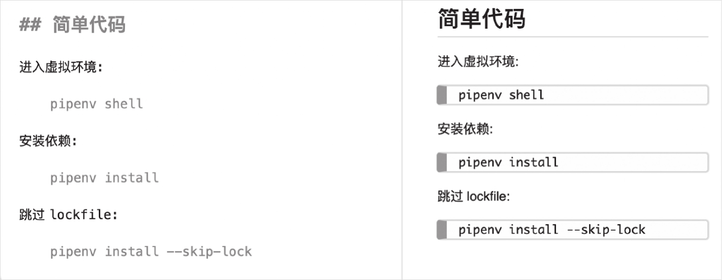 小提示:因为代码块使用Tab键或4个空格开头的效果不够直观,很多扩展语法(如GFM)提供了围栏代码块,并且支持语法高亮。
