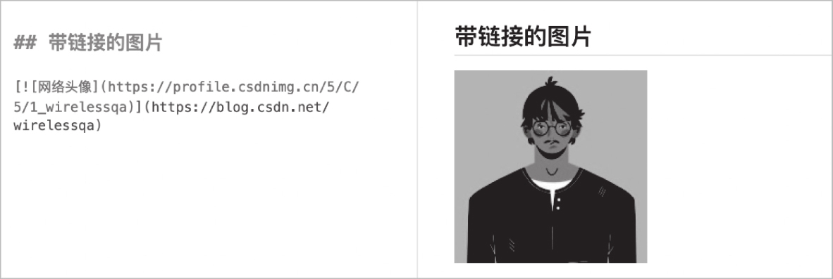 如果要给图片加上链接,如图3-15所示,那么语法格式如下。