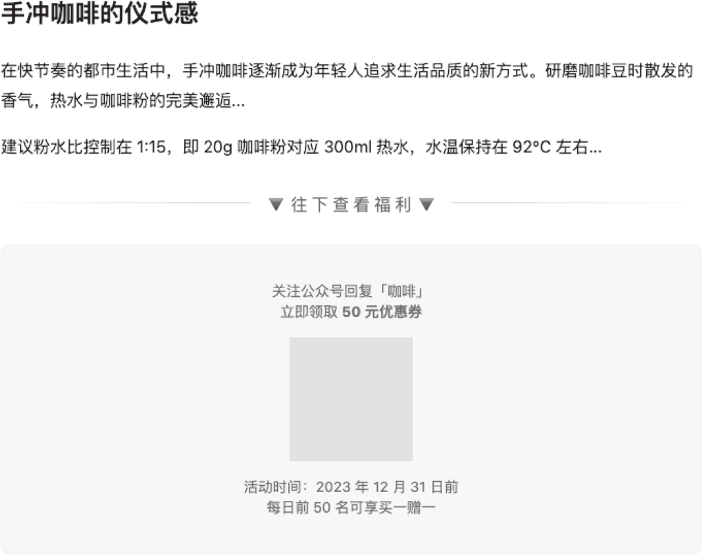 在公众号文章中,分割线常用于正文与推广信息之间,起到视觉分隔的作用。例如,正文结束后,作者可以通过插入分割线,将后续的推广内容(如商品推荐、活动信息等)与正文区分开,使文章结构更清晰,阅读体验更流畅,如图1-7所示。