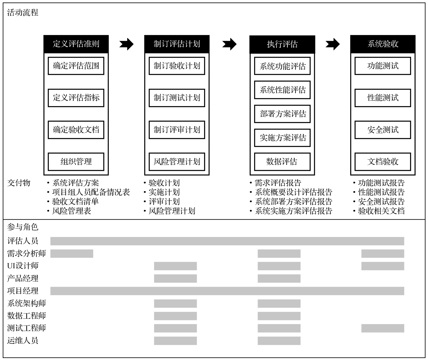 图5.7 系统评估与验收阶段活动流程及主要参与角色