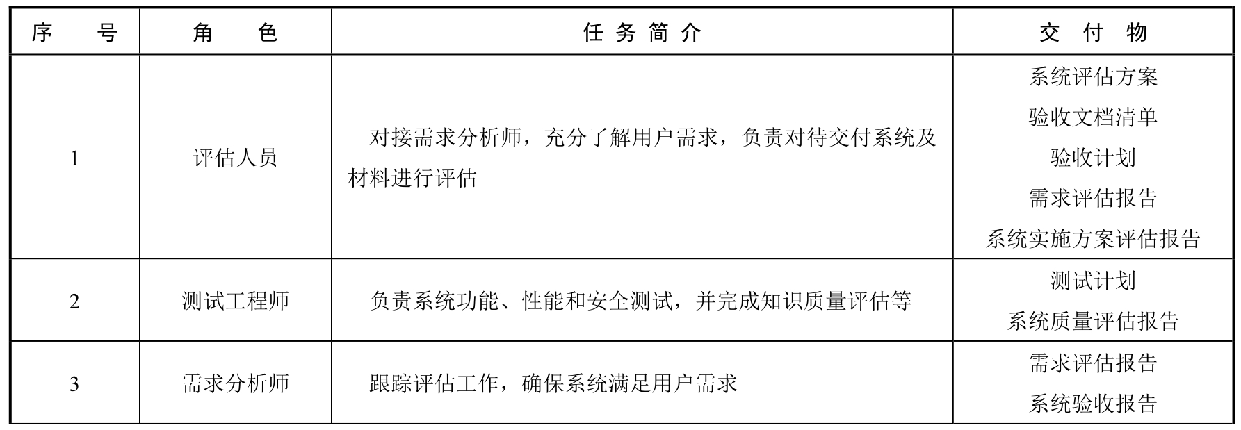 系统评估与验收阶段的参与人员角色及其任务简介如表5.11所示。
