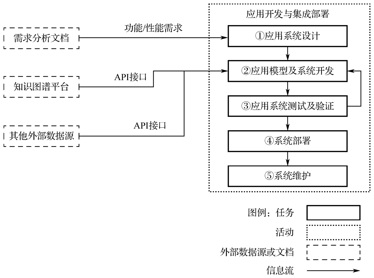 同时,用户须积极主动地表达出尽量全面和准确的需求,并配合需求人员的引导,逐步深入挖掘业务后续的隐藏需求。此外,应用场景和业务需求的边界、知识图谱要达到的目的及需求人员整理的需求规格说明文档,均须用户最终确认其准确性,以避免在知识图谱应用系统建设中修改业务范围与需求定义可能带来的项目风险及修改代价。