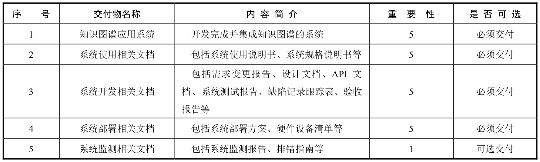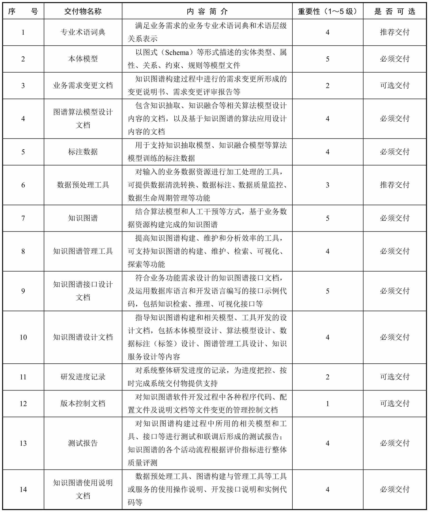 本阶段的输入包括但不限于需求规格说明书、预算文档、行业调研报告、数据规范、知识图谱基础产品或服务、知识图谱生态合作伙伴接入说明