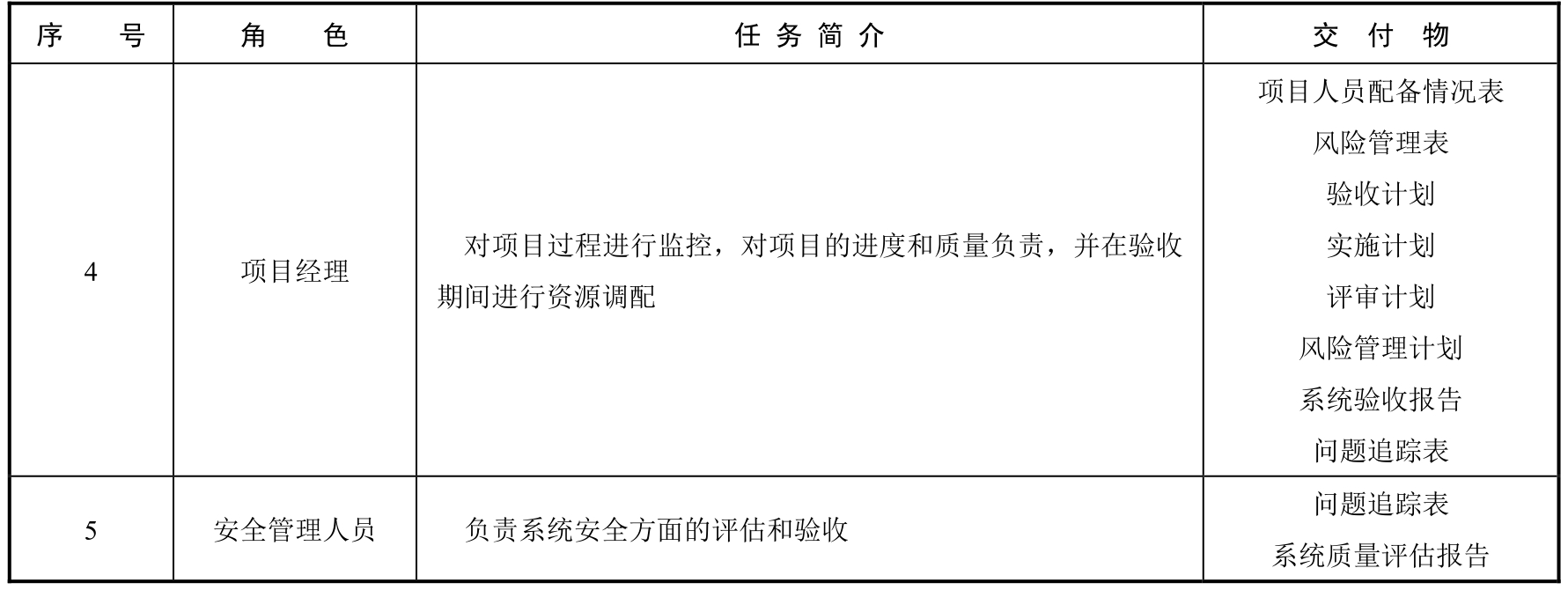 系统评估与验收阶段的参与人员角色及其任务简介如表5.11所示。