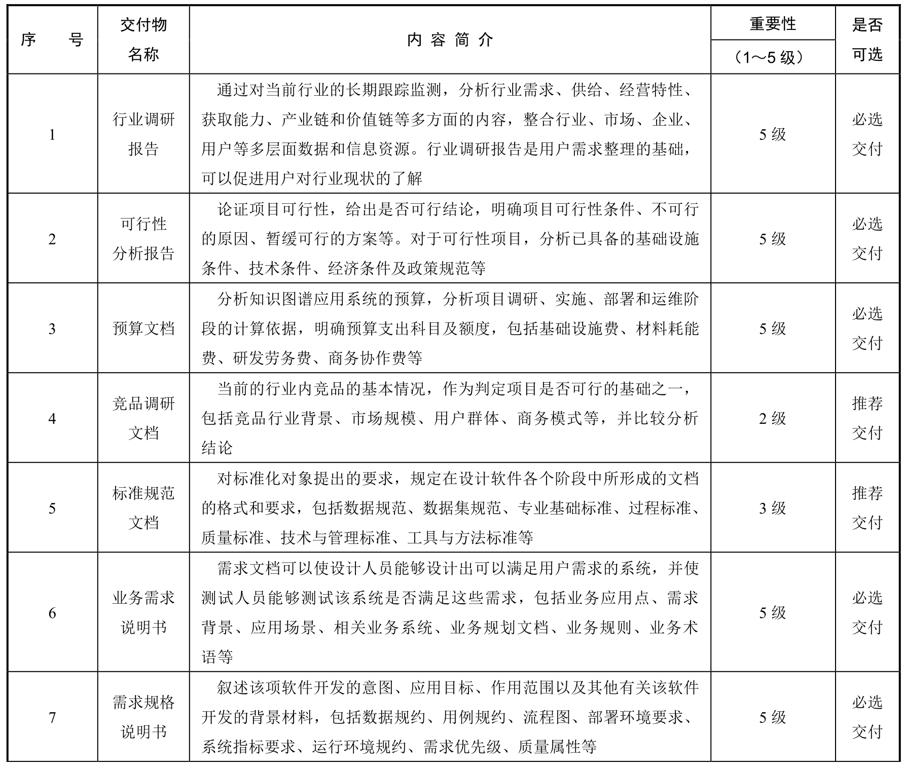 本阶段的输入包括但不限于需求规格说明书、预算文档、行业调研报告、数据规范、知识图谱基础产品或服务、知识图谱生态合作伙伴接入说明