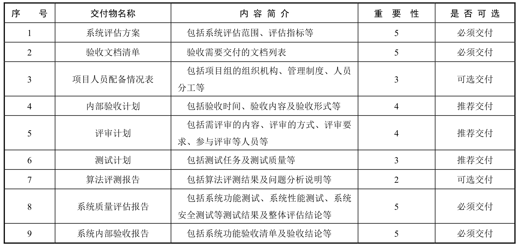 管理维护阶段的交付物及内容简介如表5.14所示。