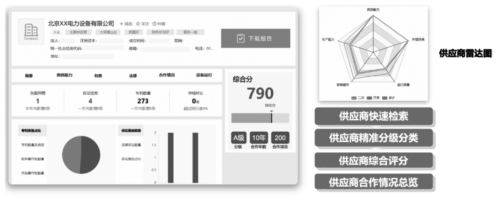 系统是在国家电网有限公司现有数据建设的基础上,结合联想集团在供应链领域的技术积累,整合计算各物资供应商信息、合同履约信息、物资质量信息、物流仓储信息等构建的,其主要功能如下。