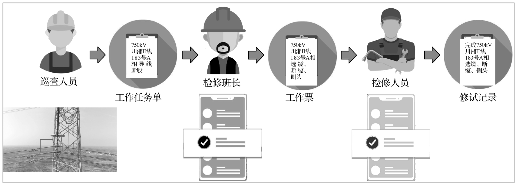 通过对电力运检领域知识图谱技术的研究,极大地完善了现有设备运维知识库,有效扩展了运维作业人员的知识,减少了培训成本。此外,通过打造基于领域知识图谱的系统,实现对一线运检工作人员各类运维问题的快速解答,实现检修工单、工作票以及修试记录智能生成与比对,预计减少运检工作时间15%以上,节省年人力成本约2.7亿元。应用示意如图5所示。