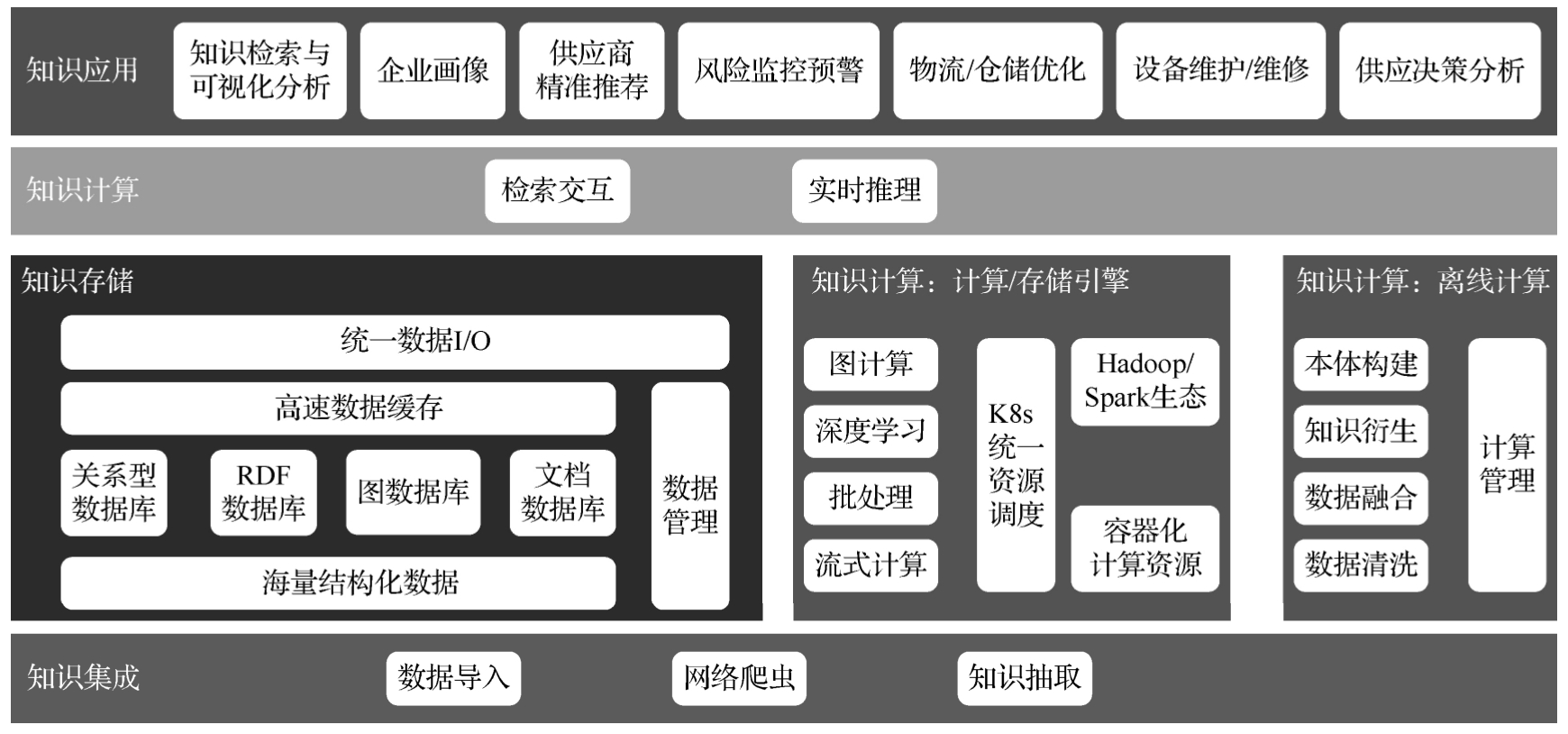 系统架构(见图6)主要由知识集成层、知识计算层、知识存储层和知识应用层组成。