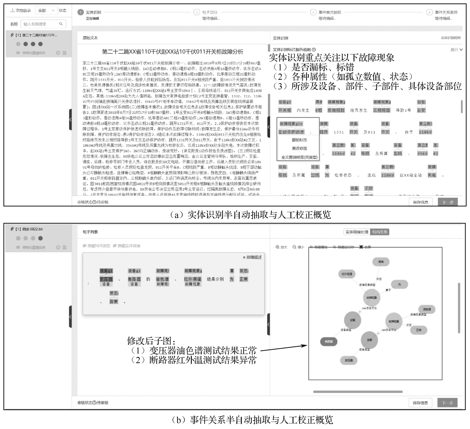 (1)基于自然语言处理技术,实现对工作票、制度标准等数据的知识抽取与映射,其中实体识别准确率约为83.26%,实体关系识别准确率约为80.19%,属性关系识别准确率约为86.77%。
