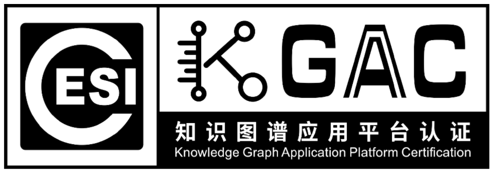 围绕知识图谱相关软件或系统的测评与认证需求,中国电子技术标准化研究院联合北京赛西认证有限责任公司、联想、华为、百度、腾讯云、蚂蚁金服、百分点、网智天元、华宇等企事业单位依托上述知识图谱相关国家标准和团体标准等联合研制了《知识图谱构建平台认证技术规范》《知识图谱应用平台认证技术规范》《知识图谱构建平台认证实施规则》《知识图谱应用平台认证实施规则》。其中,上述标准给出了测评与认证指标体系及配套检测项、功能点和合格要求,覆盖了知识图谱构建各环节能力及知识图谱应用过程中安全性、可靠性等重要特性要求,并明确了在通过认证后可向认证机构申请授权使用的产品认证标识。知识图谱构建平台认证标识和知识图谱应用平台认证标识分别如图1.6和图1.7所示。