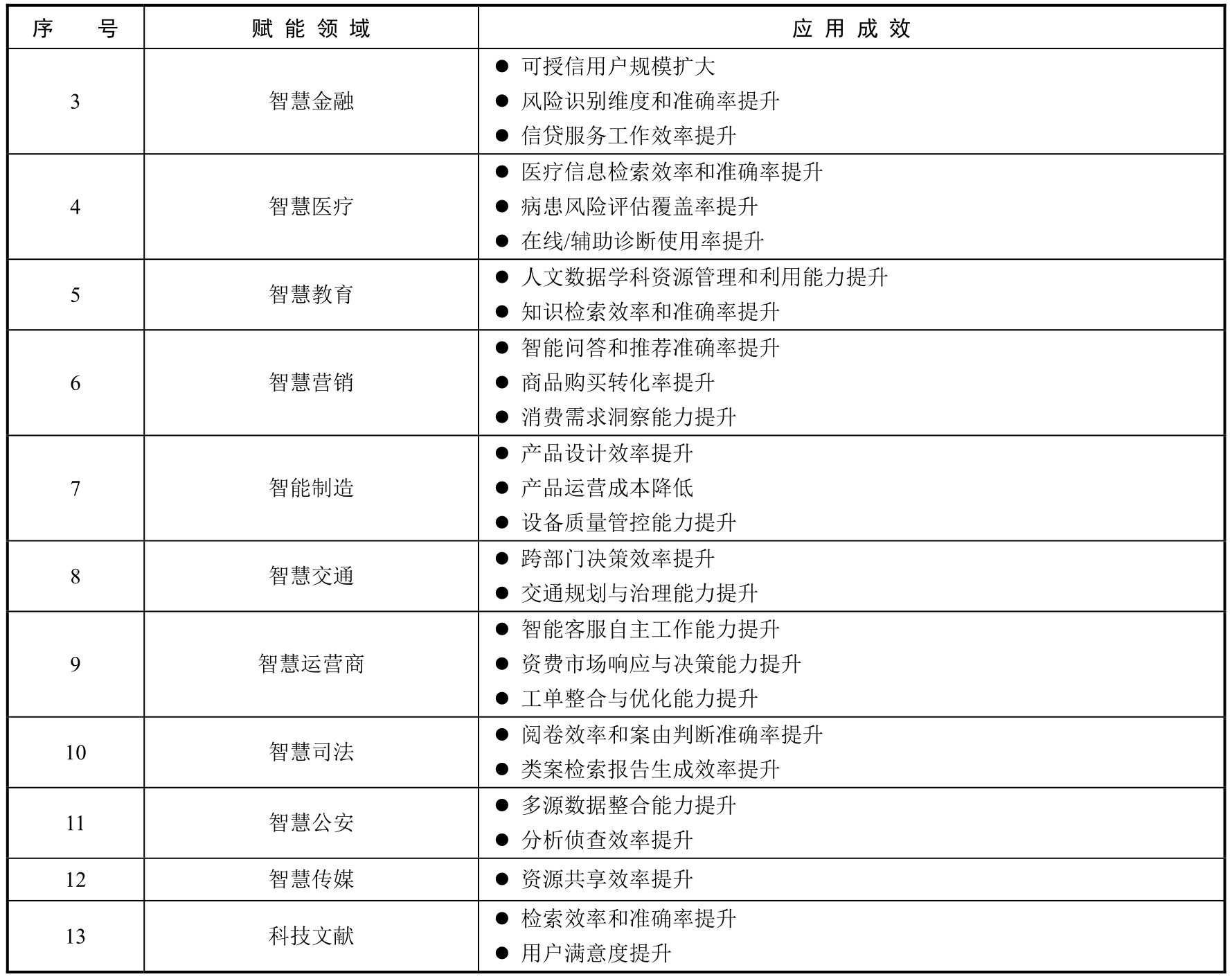 知识图谱在细分领域的应用,对于推动各行业及相关企业“知识驱动”下的转型升级具有重要意义。表1.1展示了知识图谱赋能13个领域的应用成效。