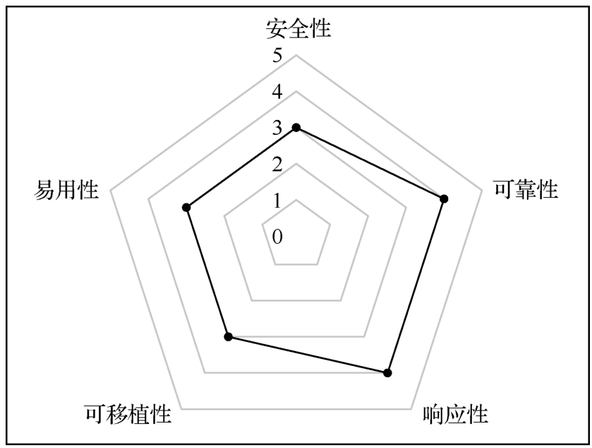 已通过知识图谱构建平台认证的平台或系统在安全性、可靠性、响应性、可移植性、易用性等方面设计了相应的功能模块,但在顶层本体模型及Schema的在线导入、导出,多维度知识图谱内容可视化展示等方面通过率较低,有待继续强化,以提升平台与外部专家、知识内容审核人员、知识内容管理人员等人员间的协同交互效率。综合考虑各维度检测项通过率及检测项数量,已通过知识图谱应用平台认证的平台平均能力分布情况如图1.12所示。