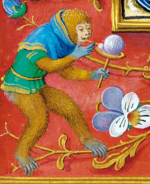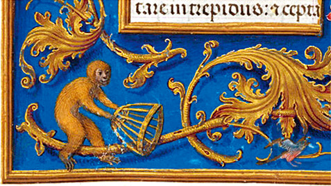 “纺纱的猴”,《伊莎贝拉祈祷书》页缘,现藏大英图书馆