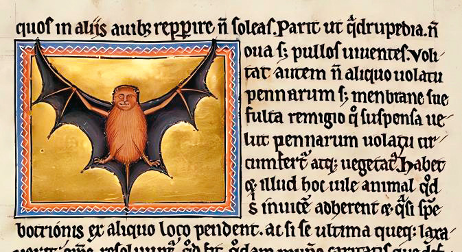 蝙蝠由鸟和鼠结合而成,靠吃灰尘和蛛网维生,午夜时分把无羽的翅膀借给魔法师,好让他们赶赴魔鬼集会时免于迟到;鸵鸟用目光孵蛋,终日望天,象征超越世俗牵挂而一心渴求天堂的贤者,是人类僧侣的楷模;松鼠是一种“小林猴”,红棕色皮毛暗示其为犹大的亲族,贮存过多食物又记不住地点,是贪婪和愚痴的化身;海豹皮能防雷电,却是撒旦的造物,听见海豹叫意味着死期将至。这些知识既非来自达尔文的《物种起源》,也不出自《集合吧!动物森友会》中的猫头鹰馆长,而是欧洲中世纪动物寓言集里司空见惯的“事实”。