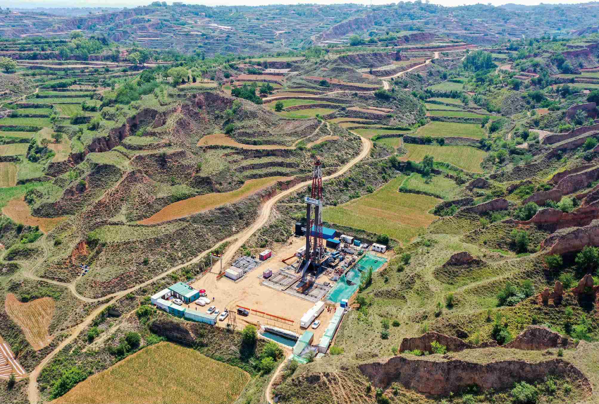 2021年6月22日拍摄的山西省长治市武乡县的一处煤层气钻井现场。(曹阳摄)