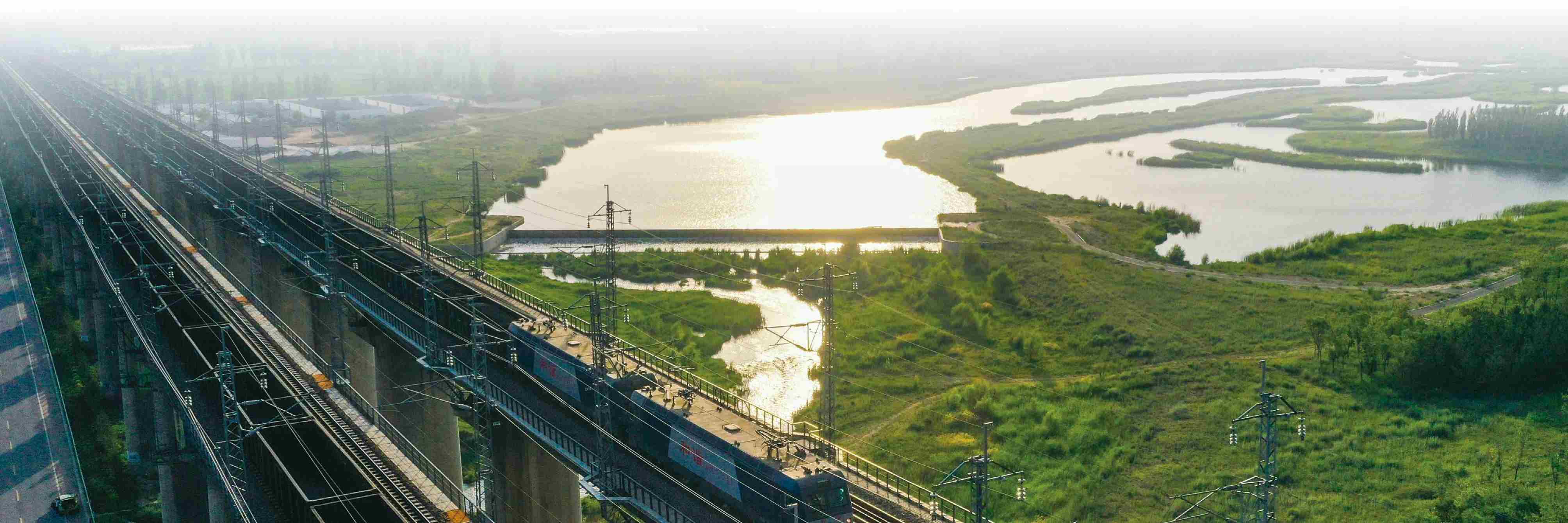 2022年7月16日,运送煤炭的重载列车行驶在大秦铁路上。(曹阳摄)