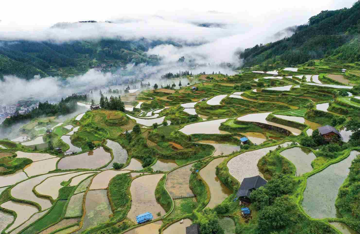 2024年5月19日拍摄的贵州省黎平县尚重镇洋洞村梯田。(杨文斌摄)
