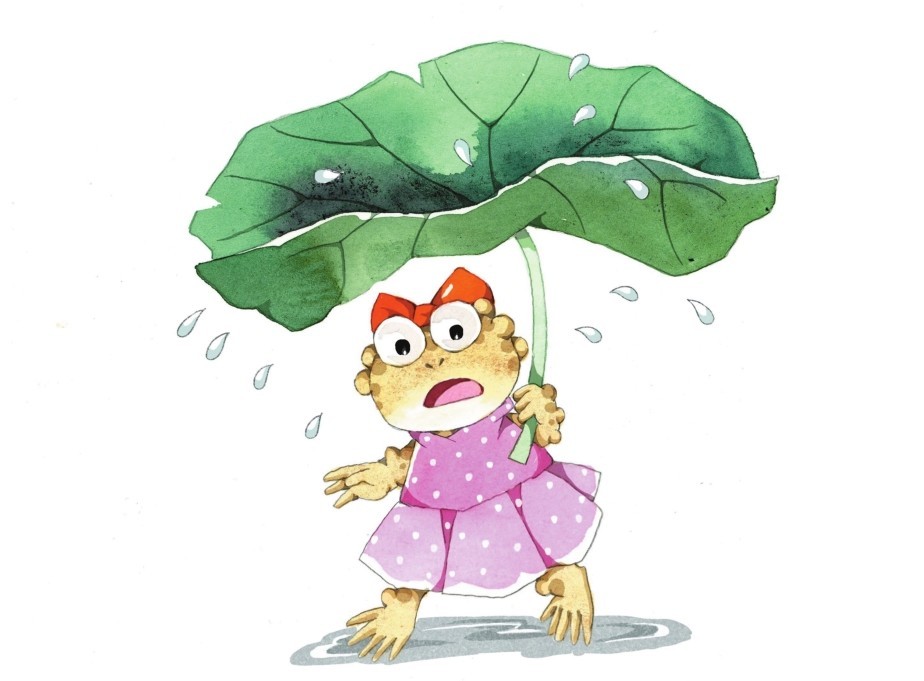 蛤蟆女士独自在后面走着,雨点儿打在伞面上,发出一声声叹息,它勾起了蛤蟆女士很多忧愁的回忆。她觉得自己太孤单、太不幸了,伤心的泪珠,像雨点儿般落下来。