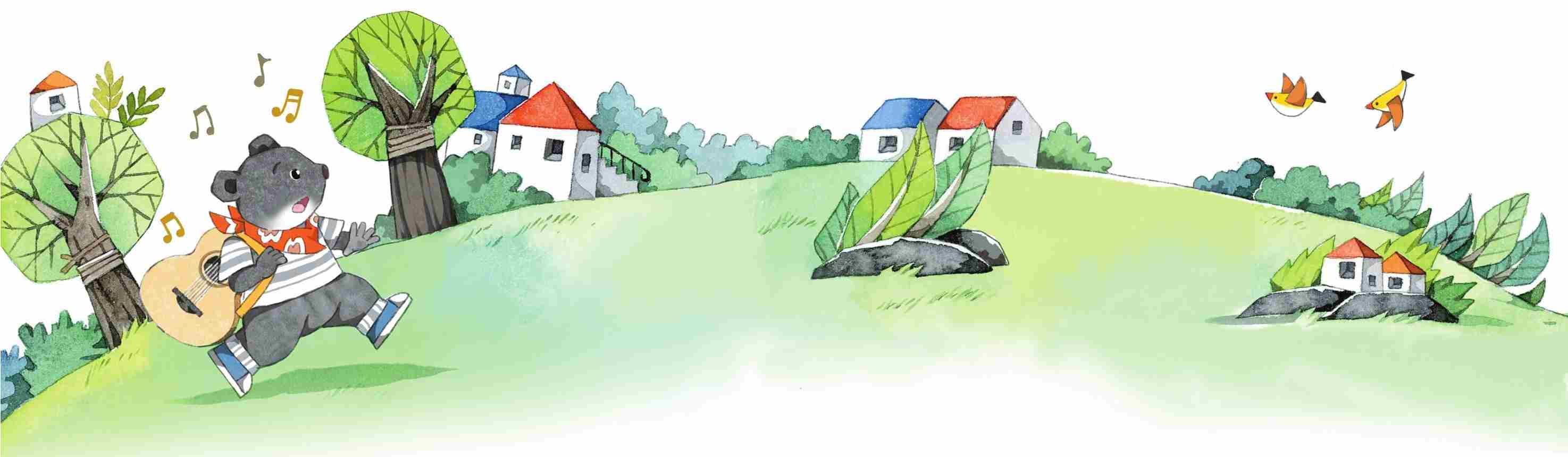 小黑熊带上干粮,背着心爱的吉他,出发去寻找家乡。