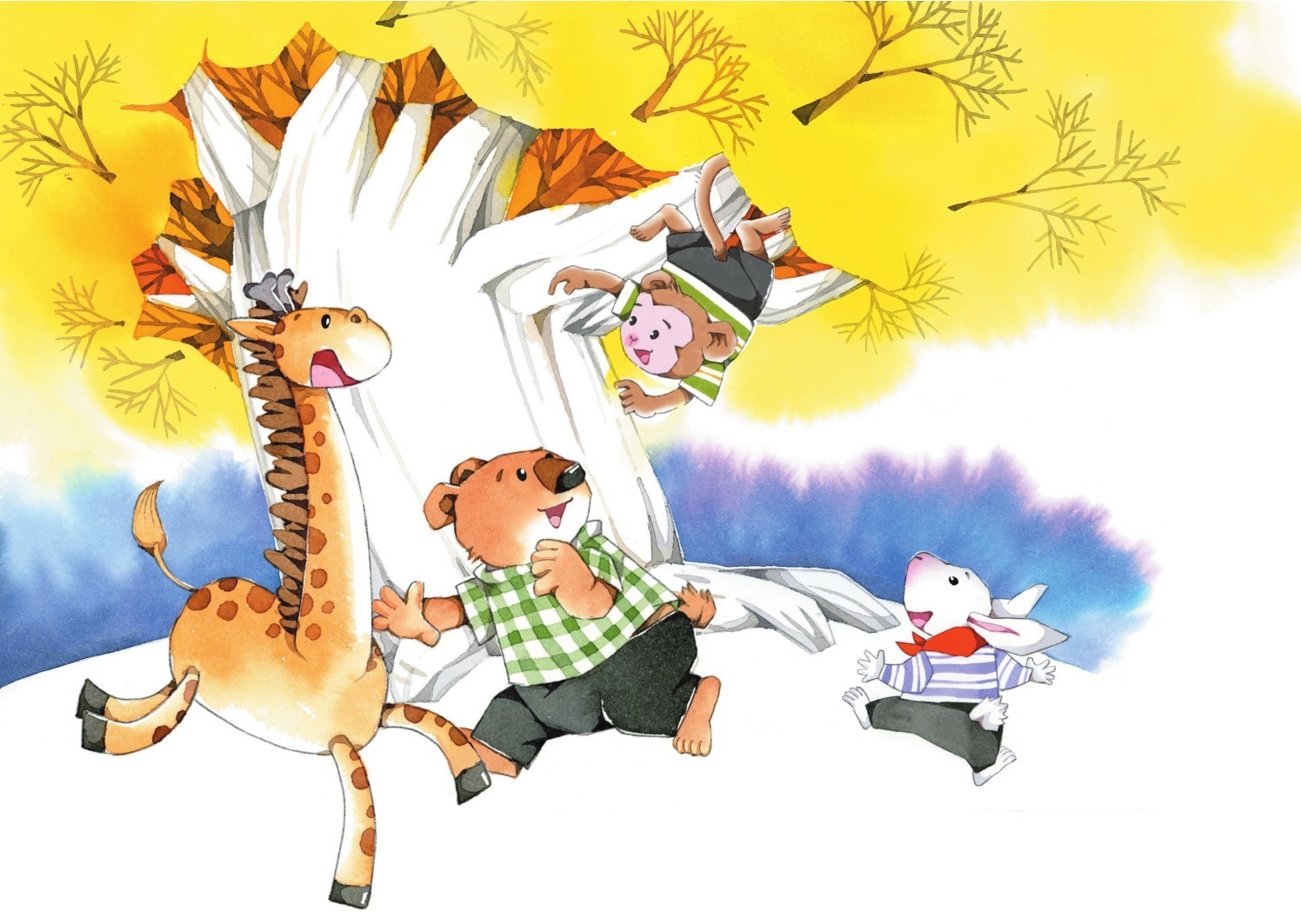 狗熊挪了一下笨拙的身子,说:“说实在的,我真羡慕,羡慕小兔子那么灵活,跑起来像一阵风!”