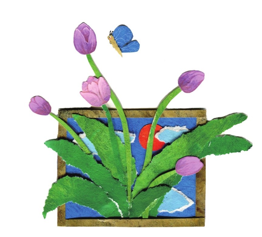 画上的郁金香说:“蓝蝴蝶,请你再飞到我的花芯里好吗?我最喜欢听你说悄悄话。”