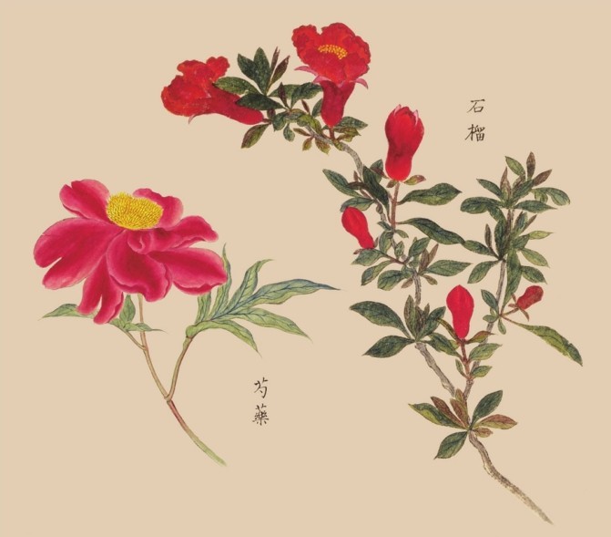 夏天的芍药与石榴 选自《梅园百花画谱》