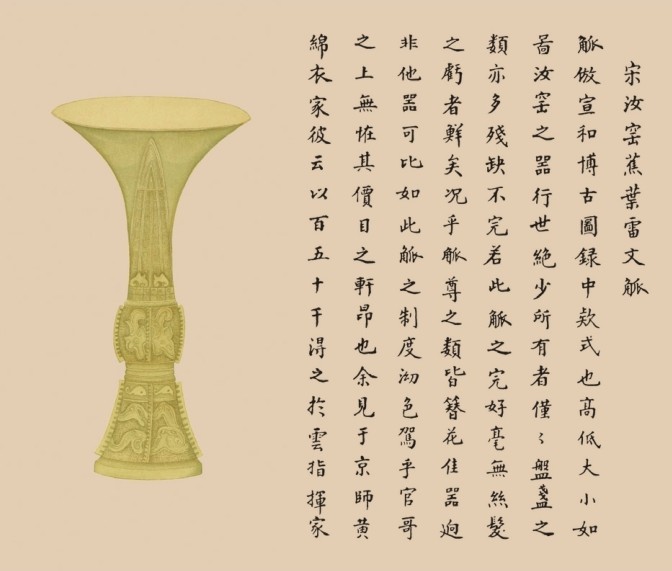 宋 汝窑蕉叶雷文觚 选自《历代名瓷图谱》