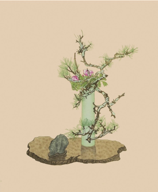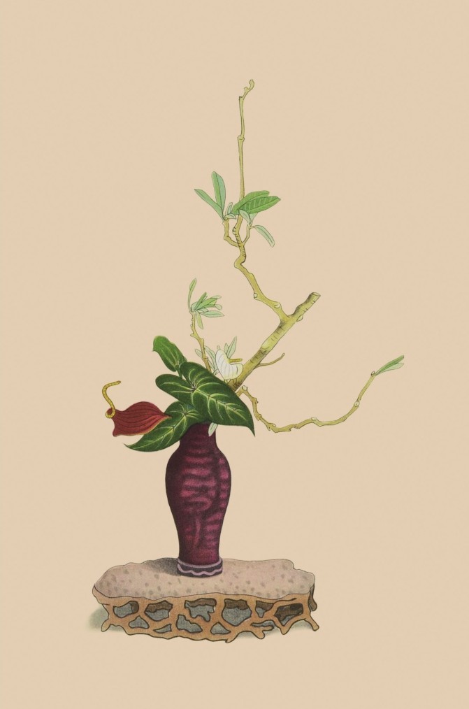 插花不可太繁,亦不可太瘦。多不过二种三种,高低疏密,如画苑布置 ① 方妙。置瓶忌两对,忌一律,忌成行列,忌以绳束缚。夫花之所谓整齐者,正以参差不伦,意态天然,如子瞻 ② 之文随意断续,青莲 ③ 之诗不拘对偶,此真整齐也。若夫枝叶相当,红白相配,此省曹 ④ 墀 ⑤ 下树,墓门华表也,恶得为整齐哉?