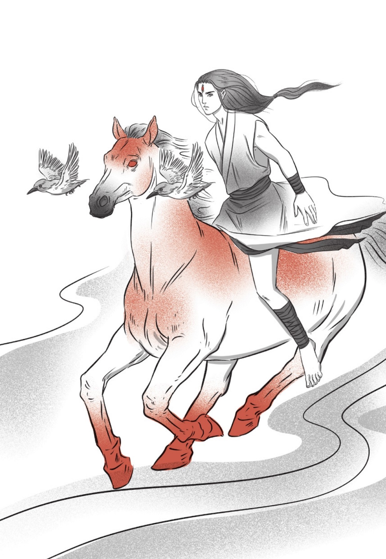 十年后,刮起了东风,滞留在豫州的奇肱国国民新制作了一辆飞车,借着东风飞回了故乡。奇肱国离玉门关有四万里之远。