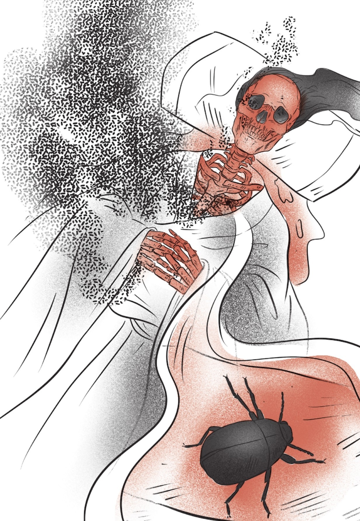 等这人气绝身亡,飞虫会一拥而上地吸食死者,即便是反复扑杀都没有用。每次扑杀大量的飞虫,就会有更多的飞虫赶来,如风雨一样连绵不断,找不到消灭它们的办法。