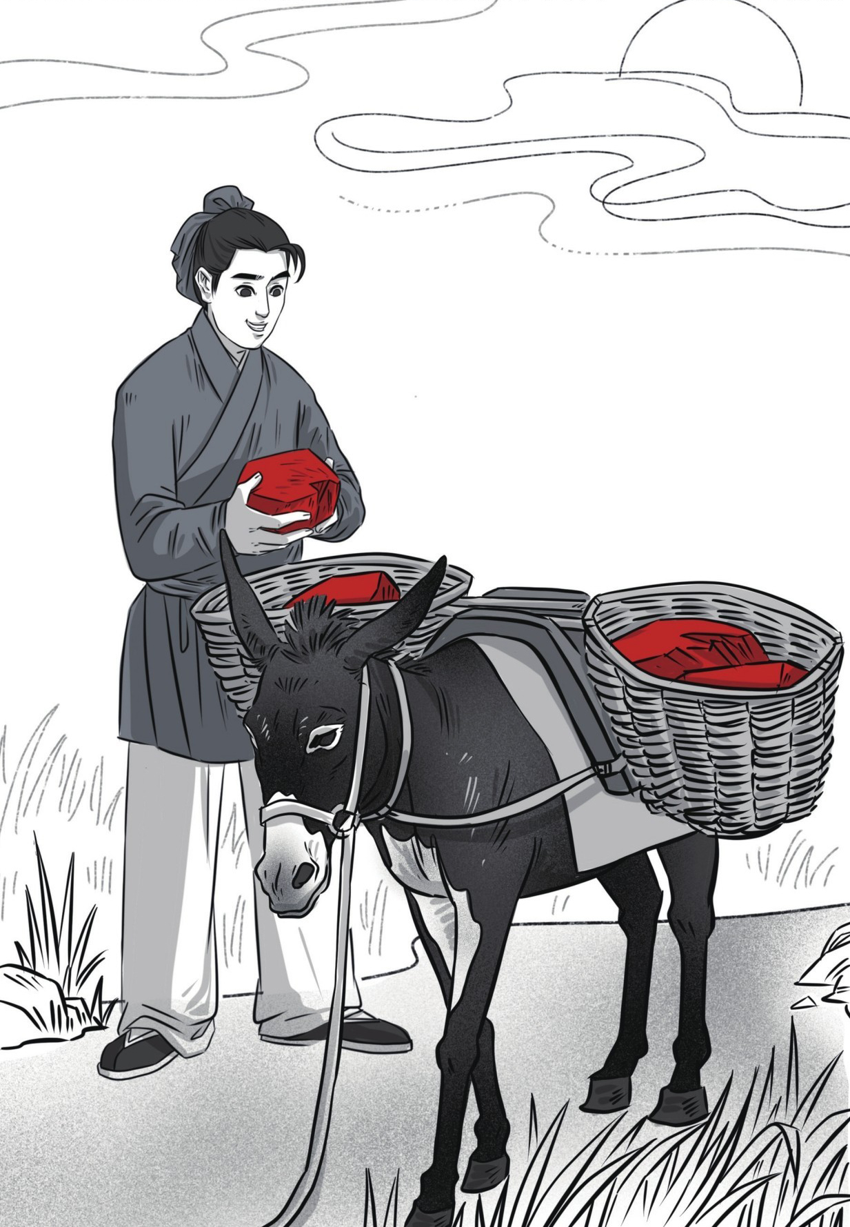 隋文帝开皇年初,广都县孝廉侯遹准备进城,走到剑门外时,见到路边有四块黄石。这四块黄石都有斗一般大,侯遹看了之后十分喜欢,就将这四块石头放进自己的笼子里,让驴驮着。