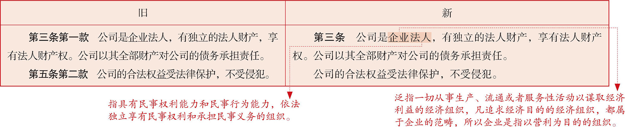 本条在原法第三条第一款与第五条第二款规定的基础上作出修改,对是公司的法律地位及其权利和责任作出原则性规定。