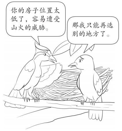 麻雀仔细打量了一下,皱了皱眉,说:“布谷鸟哥哥,我觉得这地方不太好。”布谷鸟有些不解,问道:“为什么呢?”麻雀解释道:“这儿靠近路边,人来人往,你的家若是建在这里,下蛋、孵雏都容易受到伤害。”布谷鸟听了,心中一惊,感激地说:“谢谢你提醒我!”于是,它重新选择了森林深处的一棵大树建房。
