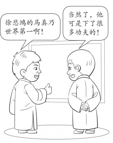 就这样,徐悲鸿的马越画越好。他画的马线条流畅,体态强健,简直就像活的一样。那些看过他的《奔马图》的人,没有一个不被那气势、那神态所震撼。就这样,徐悲鸿凭着这些画,成了书画界的翘楚,大家都尊敬地称他为一代宗师。